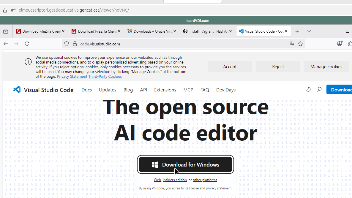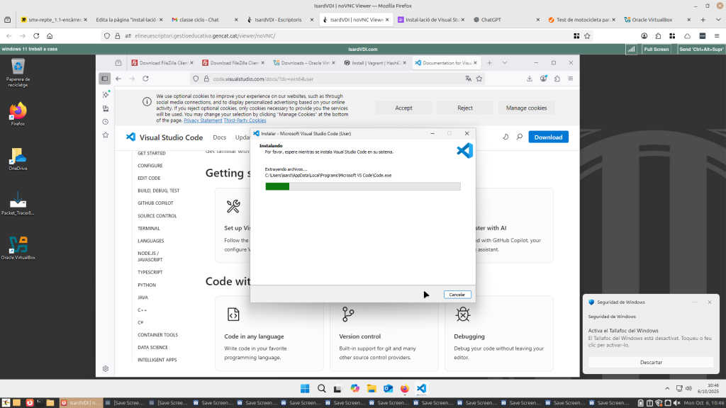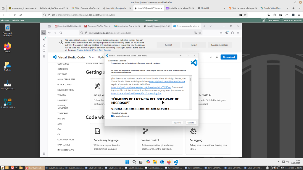 Per instal·lar Visual Studio Code, ves a la pàgina oficial code.visualstudio.com i fes clic a “Download” per descarregar la versió adequada per al teu sistema operatiu (Windows, macOS o Linux). Un cop descarregat, obre l’instal·lador i segueix els passos (acceptant termes i opcions per defecte). A Windows pots marcar l’opció “Add to PATH” per facilitar-ne l’ús des del terminal