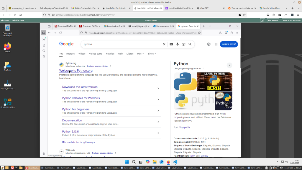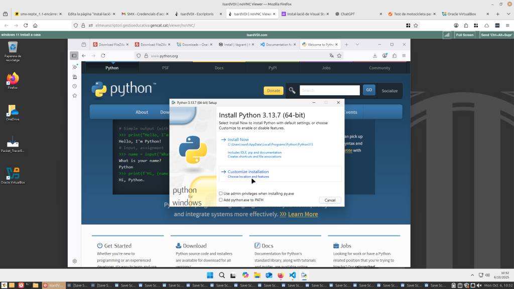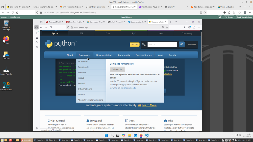 Per instal·lar Python, accedeix a la pàgina oficial python.org i dirigeix-te a la secció “Downloads”. El lloc web reconeixerà automàticament el teu sistema operatiu (Windows, macOS o Linux) i et proposarà la darrera versió estable per descarregar.