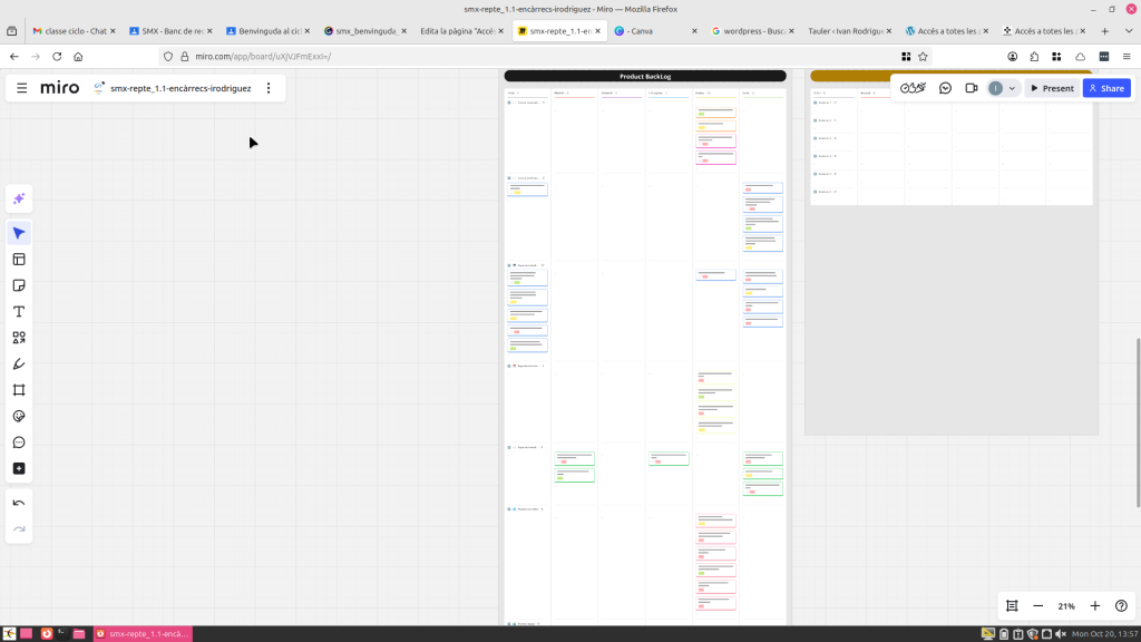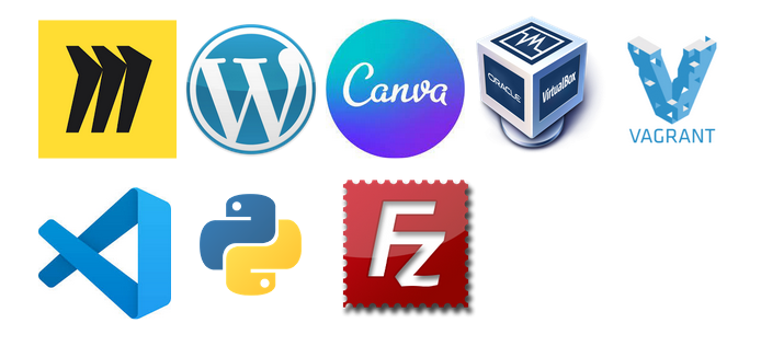 Tinc fas a totes les plataformes web(Miro Canva Vagrant Python Virtual box Fielezilla WordPress Visual Studio Code)