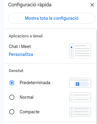 Per poder fer la resposta automàtica primer hem d'anar a gmail i donem a la icona de l'engranatge ia “Mostra tota la configuració”.
