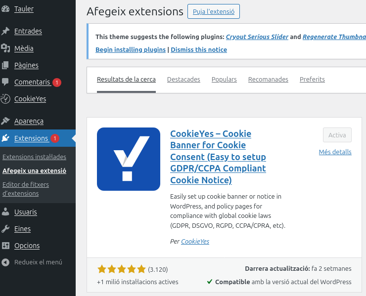 Text suggerit: Si deixeu un comentari en el lloc web, podeu optar per desar el nom, l’adreça electrònica i el lloc web en les galetes. Això és per la vostra comoditat perquè no hàgiu d’emplenar les dades de nou quan feu un altre comentari. Aquestes galetes duraran un any.