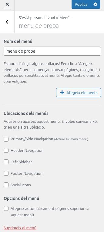 Ara li possem nom al menu i si volem que sigui el menú principal seleccionem l’opció de primary/side navegation