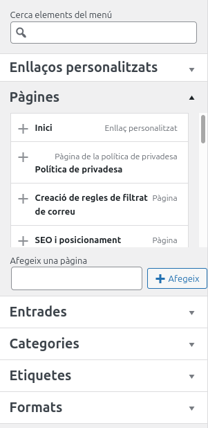 I des d'allà ja podem triar els elements que vulguem posar a la pàgina principal
