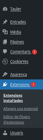 Accedeix a l’apartat “Plugins” del teu WordPress.