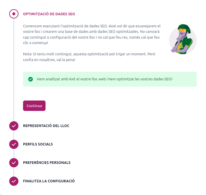 Un cop activat, accedeix a “First-time configuration” per configurar-lo segons les necessitats del teu lloc web.