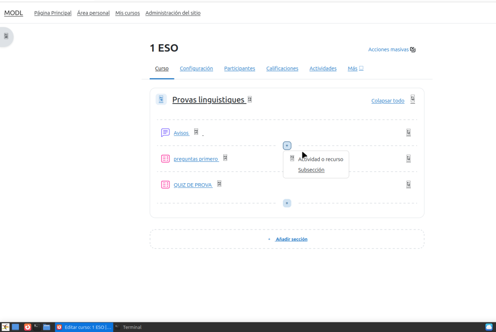 El primer de tot has d'anar al moodle i anar-te'n als meus cursos (tot això en mode edició)