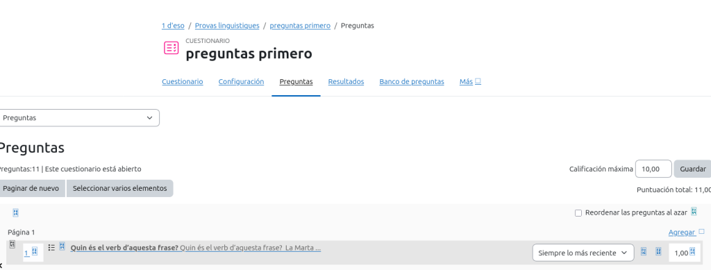 I quan facis la pregunta et sortirà això i així tota l'estona fins que tinguis totes les preguntes que vulguis